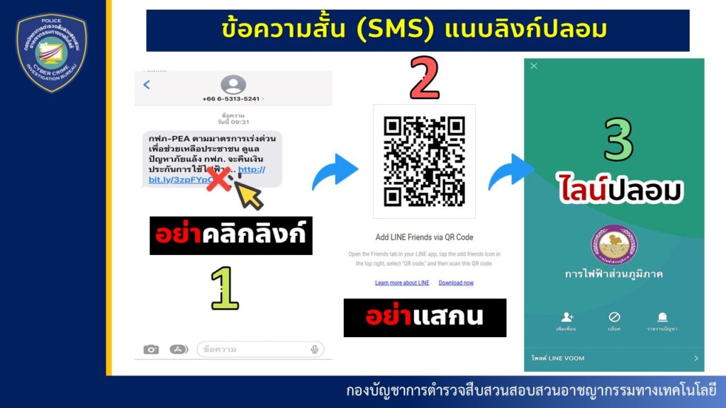 กทม. 7 เม.ย.-ตำรวจไซเบอร์ เตือนภัย SMS แอบอ้างการไฟฟ้าส่วนภูมิภาค คืนเงินประกันการใช้ไฟฟ้าดูแลปัญหาภัยแล้ง