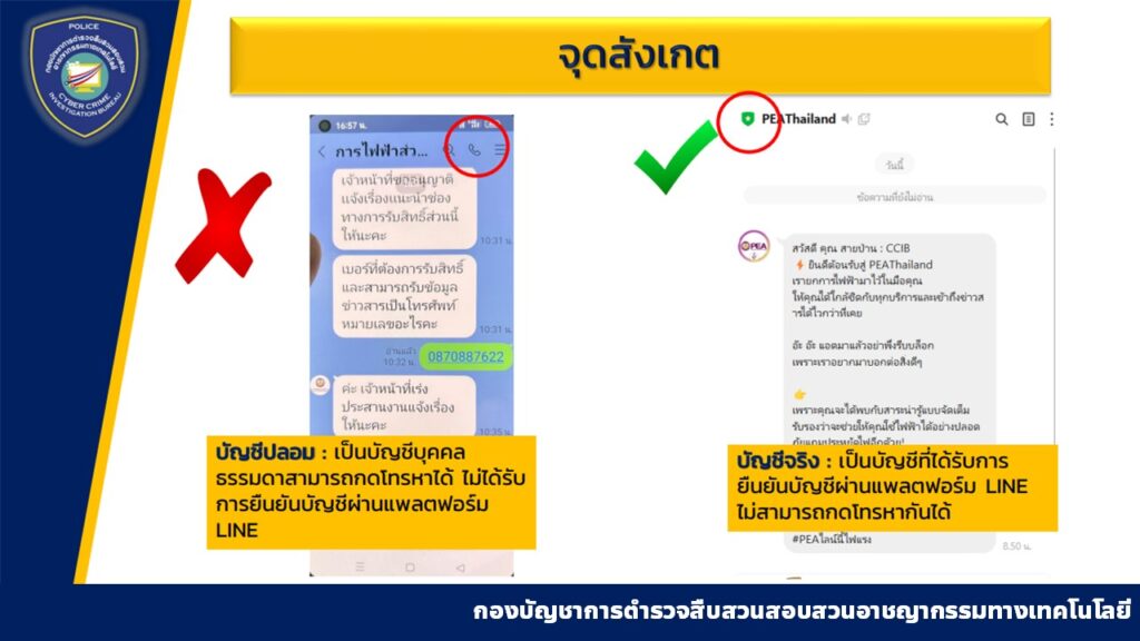พ.ต.อ.กฤษณะ พัฒนเจริญ โฆษก บช.สอท. เตือนภัยมิจฉาชีพแอบอ้างเป็นเจ้าหน้าที่การไฟฟ้าส่วนภูมิภาค (กฟภ.) ส่งข้อความสั้น (SMS) พร้อมโทรศัพท์ไปยังประชาชนแจ้งว่าจะคืนเงินประกันการใช้ไฟฟ้า แล้วหลอกลวงให้แอดไลน์ติดตั้งแอปพลิเคชันควบคุมโทรศัพท์มือถือโอนเงินออกจากบัญชี