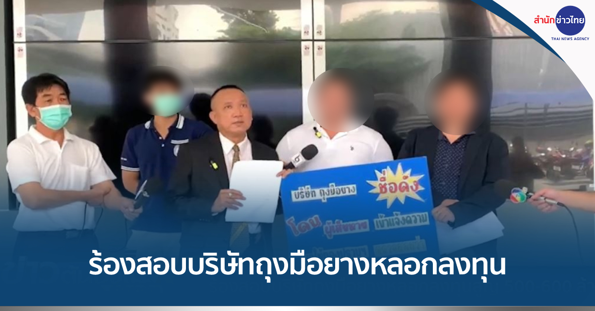 7 เม.ย. – ผู้เสียหายแจ้งความกองบัญชาการตำรวจสอบสวนกลาง ขอให้ตรวจสอบบริษัทถุงมือยางแห่งหนึ่งใน จ.ระยอง หลอกนักลงทุนซื้อหุ้น มูลค่าความเสียหาย 500-600 ล้านบาท