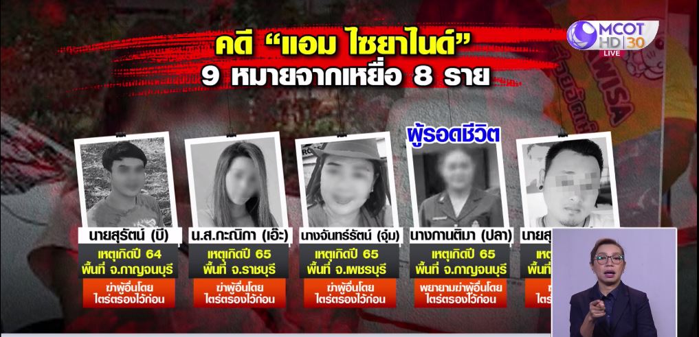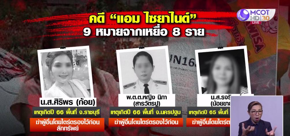 2 พ.ค. – กองปราบยังยืนยันมีผู้เสียชีวิตเชื่อมโยงคดี “แอม ไซยาไนด์” อยู่ที่ 14 ศพ เจ้าหน้าที่เร่งรวบรวมหลักฐานแต่ละคดีเพื่อขอศาลอนุมัติหมายจับในข้อหาฆ่าผู้อื่นโดยไตร่ตรองไว้ก่อน และลักทรัพย์