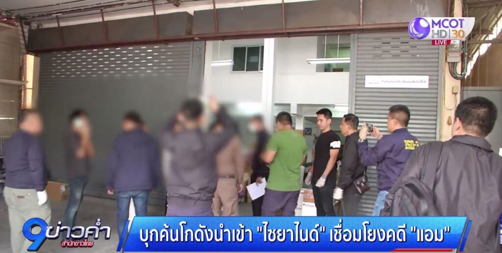 สำหรับโกดังแห่งนี้ เป็นอาคารพาณิชย์ 4 ชั้น 2 คูหา ด้านหน้าปิดประตูเหล็กเอาไว้ ส่วนด้านในมีกล่องเก็บผลิตภัณฑ์ต่างๆ จำนวนมาก เมื่อเจ้าหน้าที่แสดงหมายค้น ทางพนักงานที่ดูแลก็ได้นำเจ้าหน้าที่เข้าไปตรวจค้นด้านใน แต่ไม่อนุญาตให้สื่อมวลชนเข้าไป