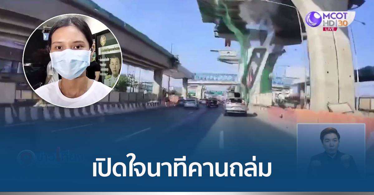 เจ้าของภาพกล้องหน้ารถคันดังกล่าว เล่าเหตุระทึกว่า ขับรถกลับจากสมุทรสาคร กำลังจะขึ้นทางด่วนตรงพระราม 2 พอขับใกล้ถึงจุดเกิดเหตุ ได้ยินเสียงครืดๆ จากนั้นแท่นปูนก็ตกหล่นมา ห่างรถตนเองประมาณ 10 เมตร จึงตัดสินใจขับเบี่ยงซ้ายออกไป เพราะไม่แน่ใจว่าจะมีอะไรตกลงมาอีกหรือไม่ ส่วนรถยนต์ได้รับความเสียหายตรงฝั่งซ้ายที่สะบัดไปโดนรถข้างๆ อยากฝากถึงผู้รับผิดชอบ ต้องระมัดระวังให้มีความปลอดภัยมากกว่านี้ เพราะนี่ไม่ใช่เหตุการณ์ครั้งแรก