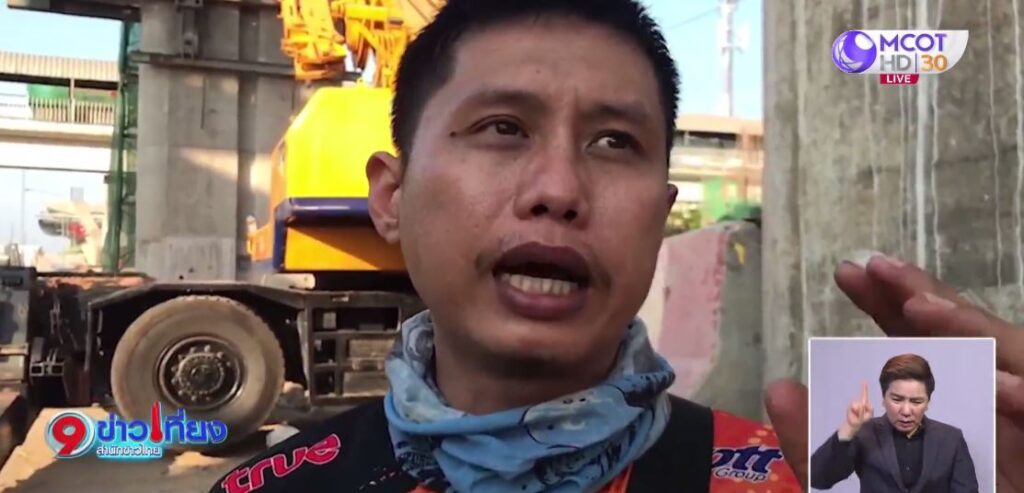 นายภูริวัฒน์ เพ็งอำไพ ผู้ที่ประสบเหตุอีกคน เล่าว่า ขณะขับรถก่อนถึงจุดเกิดเหตุได้ยินเสียงดังจากด้านบนคานที่กำลังก่อสร้าง ไม่นานแท่นปูนก็เอียงตกลงพื้นด้านล่าง พยายามหักรถยนต์หลบ แต่ก็มีเศษปูนกระเด็นมาถูกกระจกรถจนเป็นรอยแตกร้าว และทำให้รถยางแตกด้วย