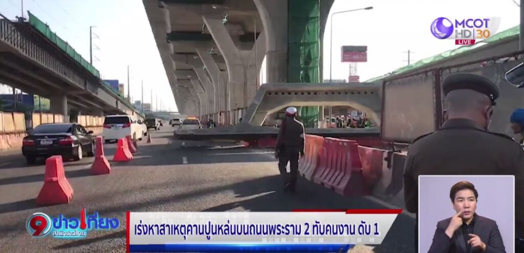 8 พ.ค. – เหตุแท่นปูนยาว 10 เมตร หล่นลงมาทับคนงานดับ 1 และมีรถยนต์เสียหาย 4 คัน เมื่อเวลาประมาณ 16.30 น. วานนี้ (7 พ.ค.66) บนถนนพระราม 2 ขาออก ก่อนถึงโฮมโปร พระราม 2 ซึ่งเป็นจุดก่อสร้างทางด่วนพระราม 3-บ้านแพ้ว ตรงข้ามศาลเจ้าแม่งู