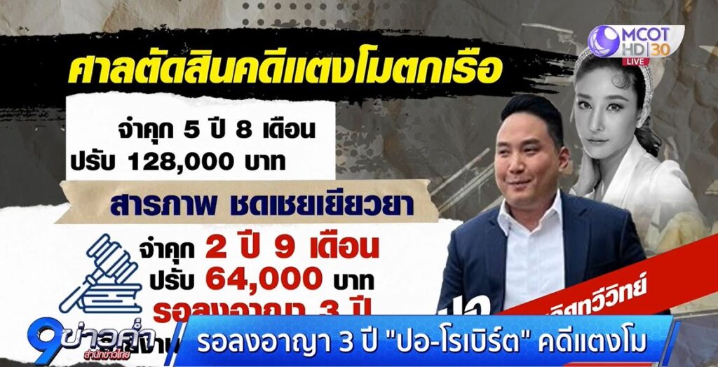 นนทบุรี 10 พ.ค. – ศาลพิพากษาสั่งจำคุก “ปอ-โรเบิร์ต” จำเลยที่ 1 และ 2 โดยปอ 5 ปี 8 เดือน ส่วนโรเบิร์ต 4 ปี 4 เดือน แต่ทั้งคู่มีเจตนาจ่ายค่าชดเชยเยียวยาแม่แตงโม ลดโทษกึ่งหนึ่ง โดยให้รอลงอาญา 3 ปี ด้านแม่แตงโม พอใจคำตัดสินศาล พร้อมรับเงินโบนัสเพิ่ม