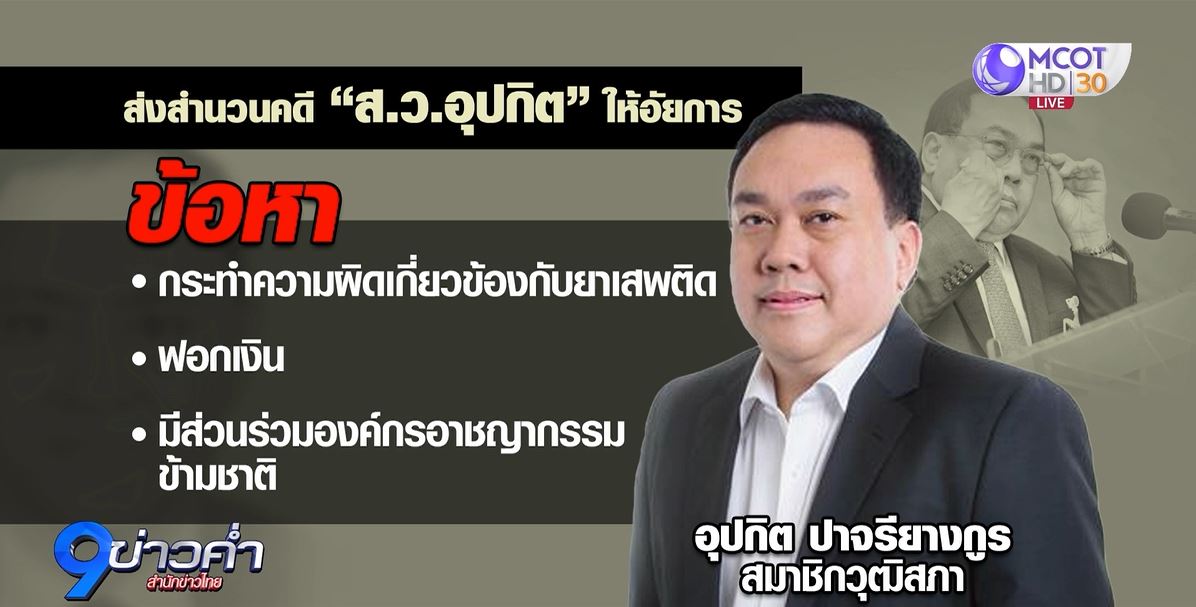 กรุงเทพฯ 18 พ.ค. – พนักงานสอบสวนส่งสำนวนคดี “ส.ว.อุปกิต” ถูกกล่าวหาพัวพันเครือข่ายตุนมินลัต ฟอกเงินยาเสพติด ให้อัยการแล้ว นัดฟังคำสั่ง 26 ก.ค.นี้