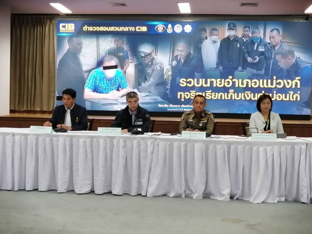 พล.ต.ต.จรูญเกียรติ ปานแก้ว ผบก.ปปป., นายศรชัย ชูวิเชียร ผู้ช่วยเลขาธิการ ป.ป.ช., นายภูมิวิศาล เกษมศุข เลขาธิการคณะกรรมการ ป.ป.ท. และ น.ส.สุปราณี สถิตชัยเจริญ รองโฆษก ปปง. ร่วมแถลงข่าวจับกุมนายอำเภอแม่วงก์ จ.นครสวรรค์ ในความผิดฐาน เป็นเจ้าพนักงานเรียกรับ หรือยอมรับทรัพย์ หรือประโยชน์อื่นใด โดยมิชอบ ตามประมวลกฎหมายอาญามาตรา 147 และข้อหา เป็นเจ้าพนักงานปฏิบัติหรือละเว้นการปฏิบัติหน้าที่โดยมิชอบ ตามมาตรา 157 โดยจับกุมได้ที่อาคารที่ว่าการอำเภอแม่วงก์ เมื่อช่วงเช้าที่ผ่านมา หลังได้รับการร้องเรียนจากเจ้าของบ่อนไก่ชน ในพื้นที่ อ.แม่วงก์ ว่าถูกนายอำเภอคนดังกล่าว กดดันบังให้จ่ายส่วยเดือนละ 3,000 บาท และบังคับให้จ่ายเงินล่วงหน้าอีก 3 เดือน รวม 4 เดือน รวมเป็นเงิน 12,000 บาท อ้างว่าเป็นค่าทำเนียมการเปิดบ่อนไก่ชน หากไม่ยอมจ่ายจะต้องเพิกถอนใบอนุญาต ทั้งที่ก่อนหน้านี้ผู้เสียหายจ่ายไปแล้ว 3 เดือน เป็นเงิน 9,000 บาท ซึ่งอ้างว่าจะนำเงินจำนวนนี้ไปปรับปรุงสนามหญ้าหน้าที่ว่าการอำเภอ