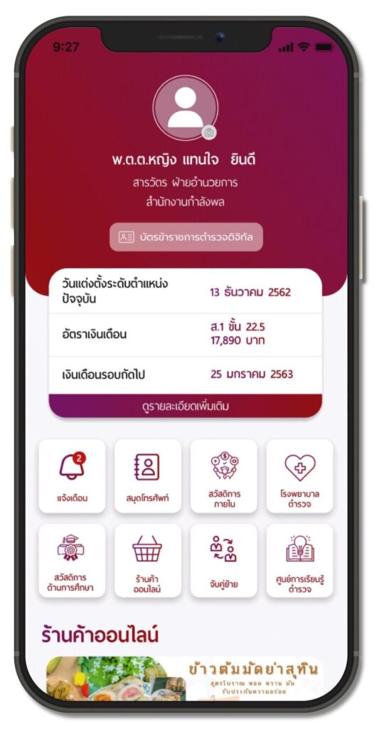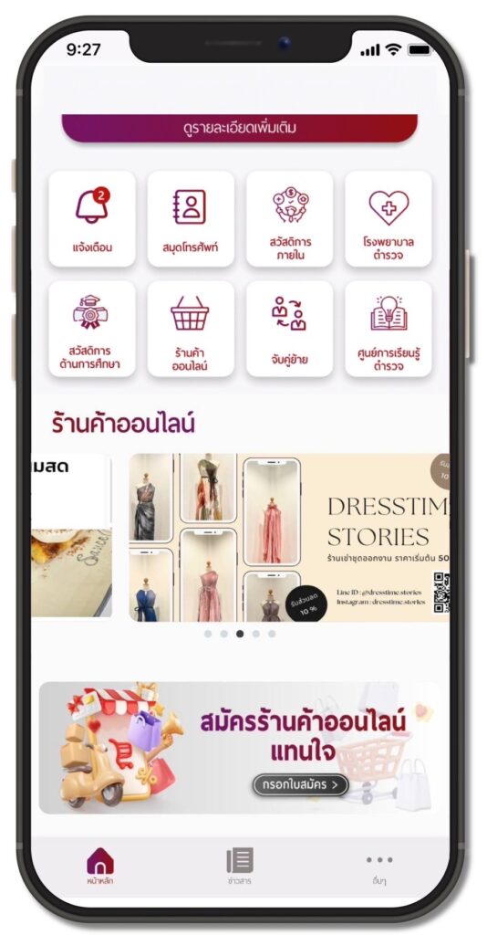 - ร้านค้าออนไลน์ : เพื่อช่วยพัฒนาคุณภาพชีวิตและเสริมรายได้ให้กับข้าราชการตำรวจและครอบครัว