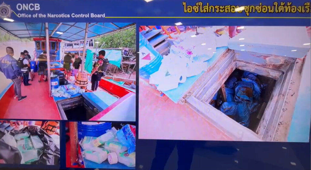สืบเนื่องจากสำนักงาน ป.ป.ส.สืบทราบว่าเครือข่ายยาเสพติดข้ามชาติดังกล่าวมีพฤติการณ์ใช้เรือประมงลักลอบลำเลียงยาเสพติดประเภท ไอซ์ และเฮโรอีน น้ำหนักกว่า 1,000 กก.ไปส่งต่อไปยังเรือเดินสมุทรขนาดใหญ่บริเวณกลางทะเลอ่าวไทย จากการติดตามพบกลุ่มผู้ต้องสงสัยจะมีการขนยาเสพติดโดย การบรรจุใส่ถังสแตนเลสเปล่า ถังน้ำมัน นำใส่เข้าใต้ท้องเรือ จากนั้นชุดปฏิบัติการจึงวางเวรยาม 24 ชม. เพื่อสังเกตการณ์ จนกระทั่งเมื่อวันที่ 30 พค. ที่ผ่านมา พบรถกระบะนำกระสอบและถังที่บรรจุยาเสพติดลำเลียงลงเรือ เจ้าหน้าที่จึงได้แสดงตัวเข้าจับกุม
