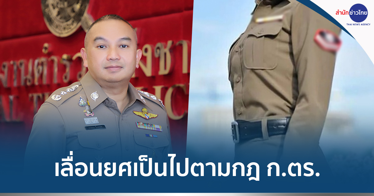 กทม. 8 มิ.ย.- โฆษก ตร.แจงปมเลื่อนยศ ร.ต.อ.หญิง เป็นไปตามกฎ ก.ตร. ว่าด้วยวิธีการแต่งตั้งยศ มีคุณวุฒิบรรจุปริญญาโท สามารถเลื่อนเป็น ร.ต.อ.ได้ภายใน 2 ปี ย้ำ ตร.ให้ความสำคัญตำรวจชั้นผู้น้อย เปิดสอบแข่งขันเลื่อนเป็นสัญญาบัตรกว่า 880 อัตรา