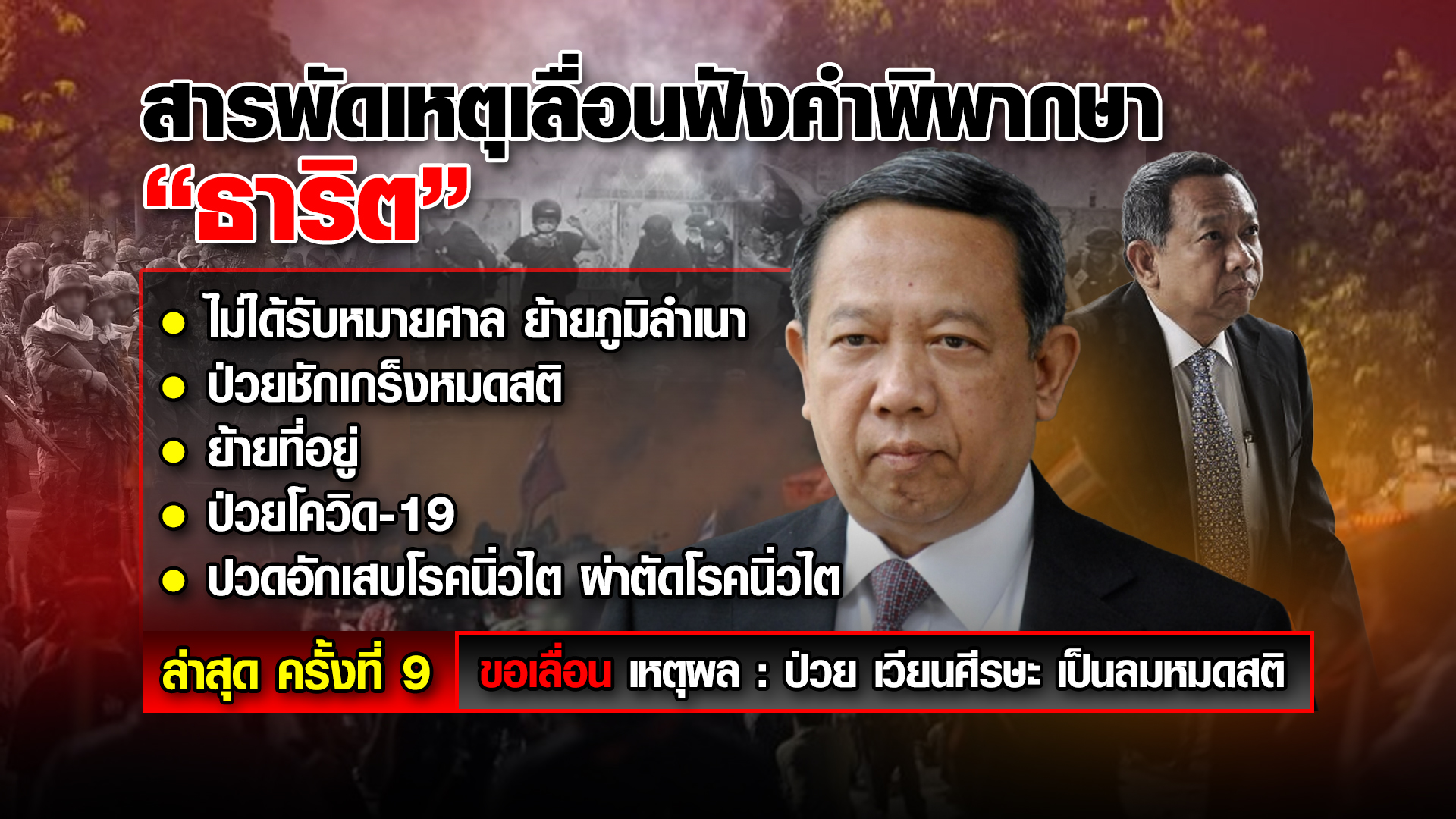 ต่อมาวันที่ 2 ก.พ. 2566 ศาลนัดอ่านคำพิพากษาฎีกาคดีนี้เป็นครั้งที่ 7 แต่ธาริต มอบหมายให้ทนายความยื่นคำร้องพร้อมใบรับรองแพทย์ ขอเลื่อนฟังคำพิพากษาศาลฎีกาออกไปก่อน เนื่องจากต้องเข้ารับการผ่าตัดนิ่วในไต ที่โรงพยาบาลโดยแพทย์ให้รักษาและรอดูอาการเป็นเวลา 3 เดือน