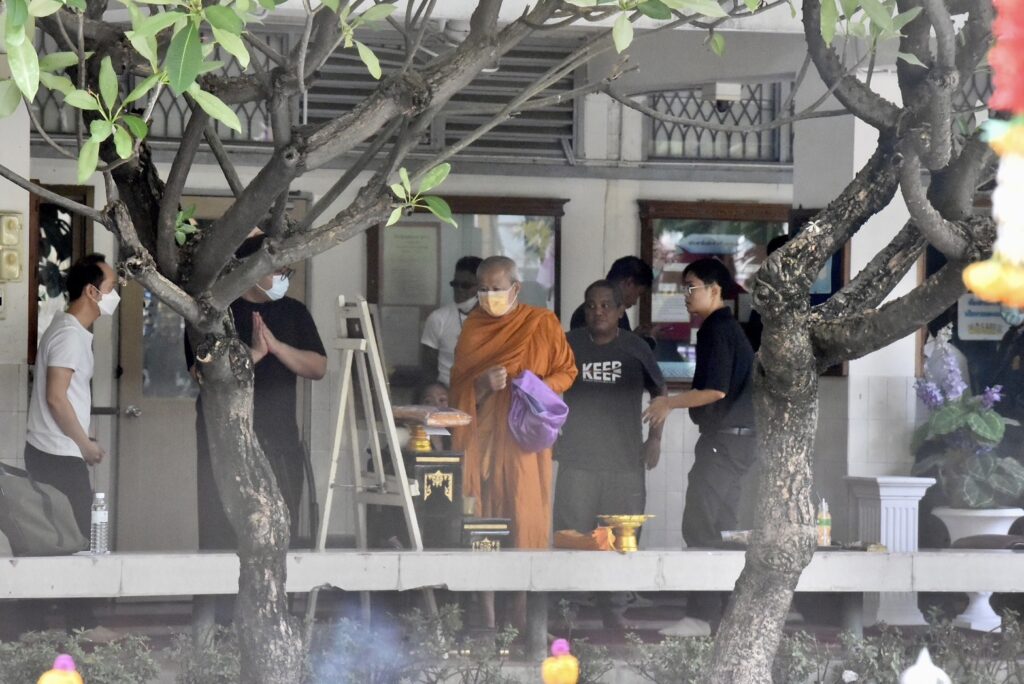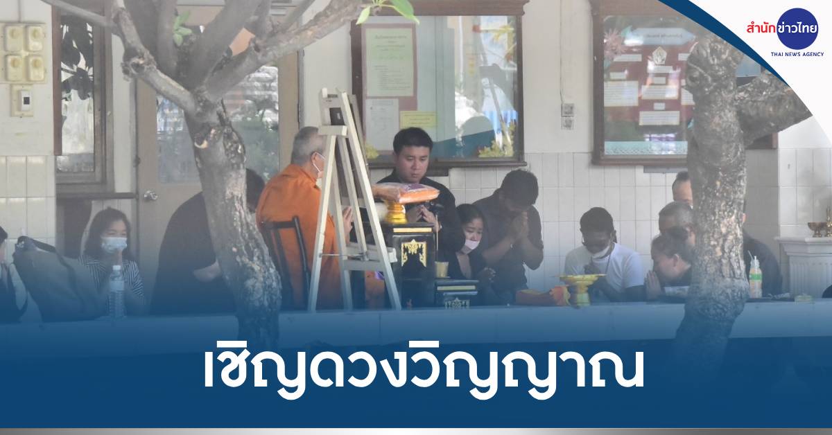 กทม. 24 มิ.ย.-ครอบครัวนักเรียนชายเหยื่อถังดับเพลิงระเบิด นิมนต์พระทำพิธีเชิญดวงวิญญาณ บริเวณหน้าศาลพระภูมิของโรงเรียน