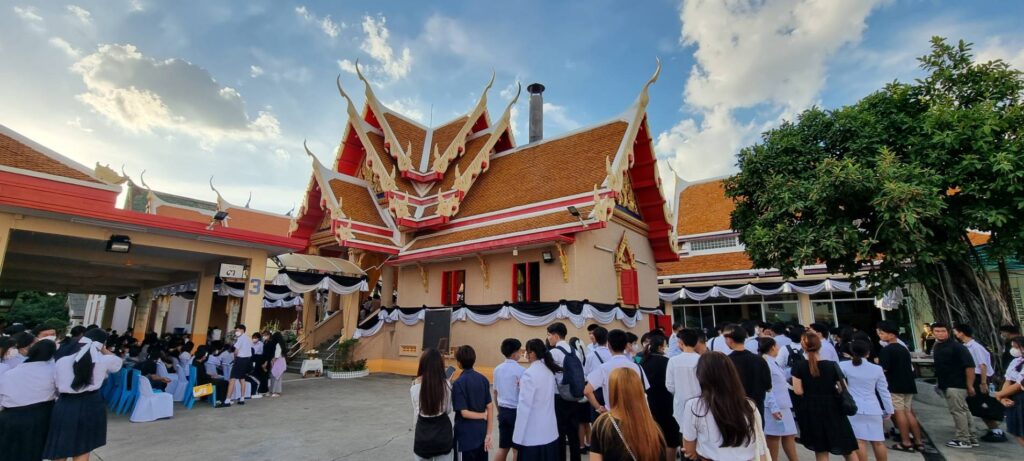 ที่ฌาปนสถาน วัดสุนทรธรรมทาน (วัดแคนางเลิ้ง) เมื่อเวลา 17.00 น. วันนี้ (27 มิ.ย.) นายชัชชาติ สิทธิพันธุ์ ผู้ว่าฯ กทม. เป็นประธานพิธีพระราชทานเพลิงศพ “น้องเบนซ์” อายุ 18 ปี เสียชีวิตจากเหตุการณ์ถังดับเพลิง Co2 ระเบิด ภายในโรงเรียนราชวินิตมัธยม เมื่อวันที่ 23 มิ.ย.ที่ผ่านมา โดยมีญาติ กลุ่มเพื่อน รุ่นพี่ รุ่นน้อง คณะอาจารย์ เจ้าหน้าที่กรุงเทพมหานคร ร่วมส่งดวงวิญญาณน้องเบนซ์เป็นครั้งสุดท้าย