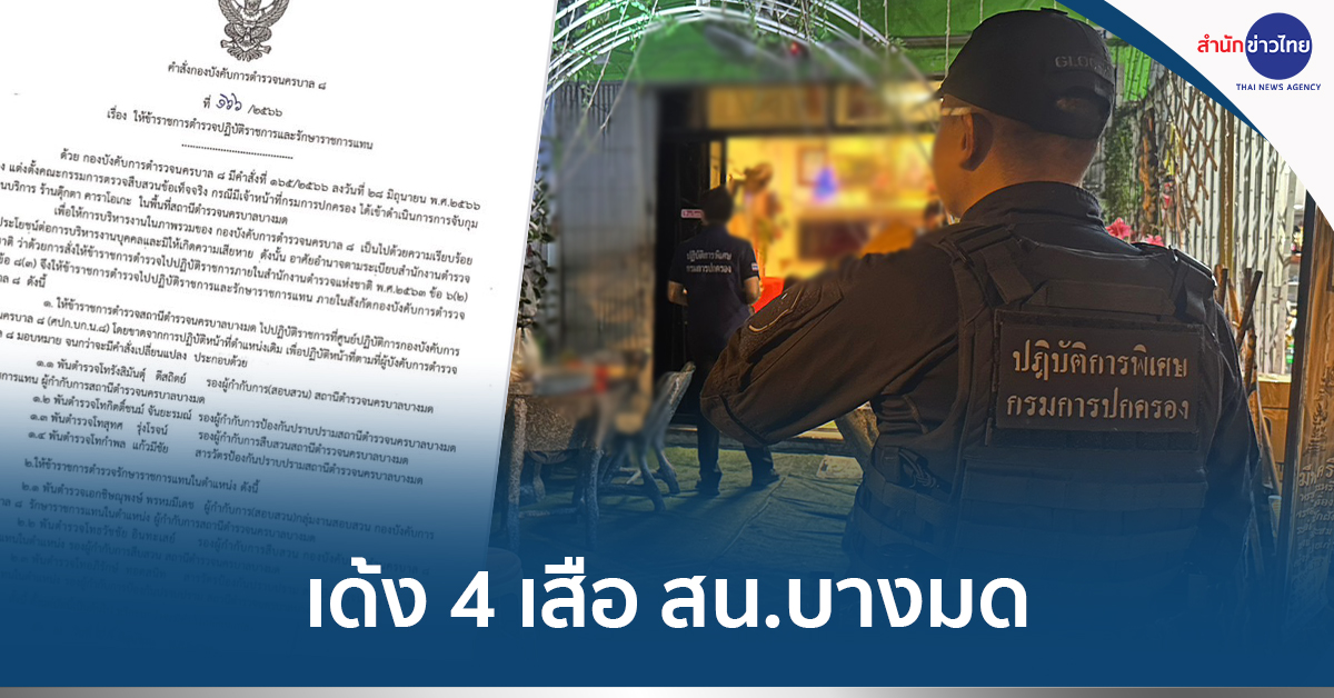 ทั้งนี้ พ.ต.อ.เศรษฐศักดิ์ ยิ้มเจริญ รองผบก.น.8 รักษาราชการแทน ผบก.น.8 ลงนามคำสั่ง 166/2566 เรื่อง ให้ข้าราชการตำรวจปฏิบัติราชการและรักษาราชการแทนด้วย บก.น.8 มีคำสั่งที่ 165/2566 ลงวันที่ 28 มิ.ย.2566 เรื่อง แต่งตั้งคณะกรรมการตรวจสืบสวนข้อเท็จจริง กรณีมีเจ้าหน้าที่กรมการปกครอง ได้เข้าดำเนินการจับกุมสถานบริการ ร้านคาราโอเกะ ในพื้นที่สน.บางมด เพื่อให้การบริหารงานในภาพรวมของ บก.น.8 เป็นไปด้วยความเรียบร้อยเพื่อประโยชน์ต่อการบริหารงานบุคคลและมิให้เกิดความเสียหาย ดังนั้น อาศัยอำนาจตามระเบียบสำนักงานตำรวจแห่งชาติ ว่าด้วยการสั่งให้ข้าราชการตำรวจไปปฏิบัติราชการภายในสำนักงานตำรวจแห่งชาติ พ.ศ.2563 ข้อ 6 (2)และ ข้อ 8 (3) จึงให้ข้าราชการตำรวจไปปฏิบัติราชการและรักษาราชการแทน ภายในสังกัดกองบังคับการตำรวจ