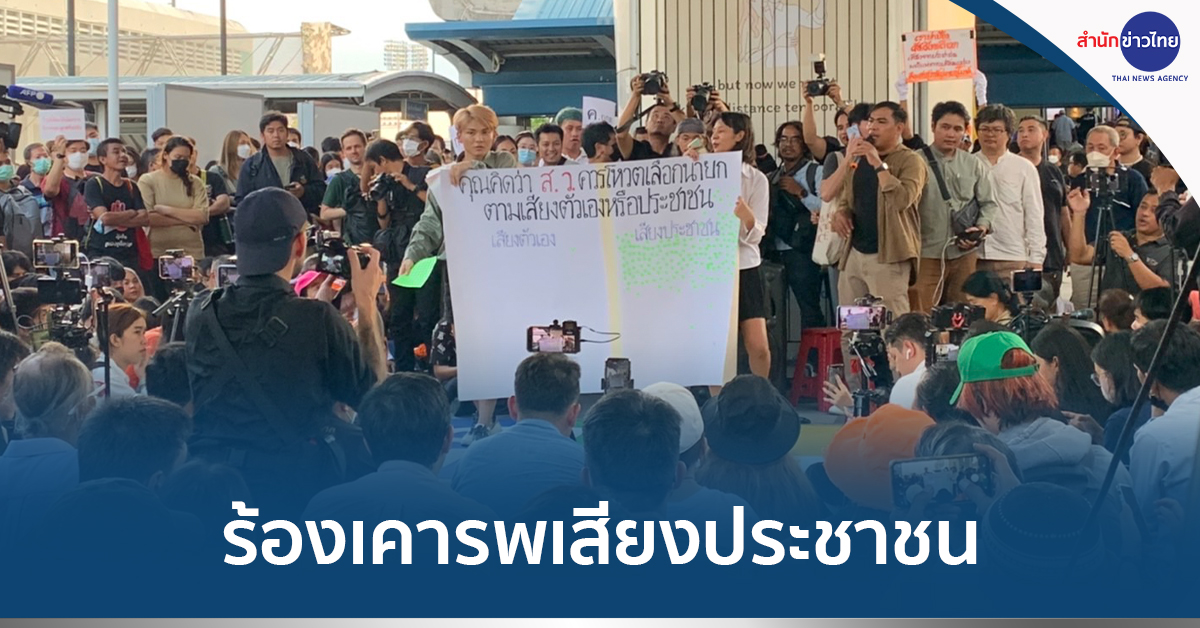 เวลา 18.00 น. ที่สกายวอล์ก หอศิลปวัฒนธรรมแห่งกรุงเทพมหานคร (หน้าห้าง MBK) มวลชนและกลุ่มผู้สนับสนุน ทยอยเดินทางมารวมตัวเพื่อทำกิจกรรมและแสดงออกในการประท้วงและคัดค้านกรณีที่คณะกรรมการการเลือกตั้งหรือ กกต. ส่งคำร้องให้ศาลรัฐธรรมนูญ วินิจฉัยสมาชิกภาพความเป็น ส.ส. ของนายพิธา ลิ้มเจริญรัตน์ ก่อนวันโหวตเลือกนายกรัฐมนตรีเพียงวันเดียว และเรียกร้องให้สมาชิกวุฒิสภา หรือ ส.ว.ออกมาโหวตเลือกนายกรัฐมนตรี โดยฟังเสียงของประชาชน เพื่อให้ประเทศเดินหน้าต่อไปตามระบอบประชาธิปไตย โดยมี นายอานนท์ นำภา แกนนำและเครือข่ายทยอยกันปราศรัย มีกิจกรรม “ทำโพล” กับคำถามที่ว่า “คุณคิดว่า ส.ว.ควรจะโหวตเลือกนายกรัฐมนตรีตามเสียงของตัวเองหรือควรโหวตเลือกตามเสียงของประชาชน” โดยให้ผู้ชุมนุมติดสติกเกอร์สีเขียว พบว่าผู้ชุมนุมต่างเห็นตรงกันว่า ส.ว.ควรฟังโหวตตามเสียงประชาชน