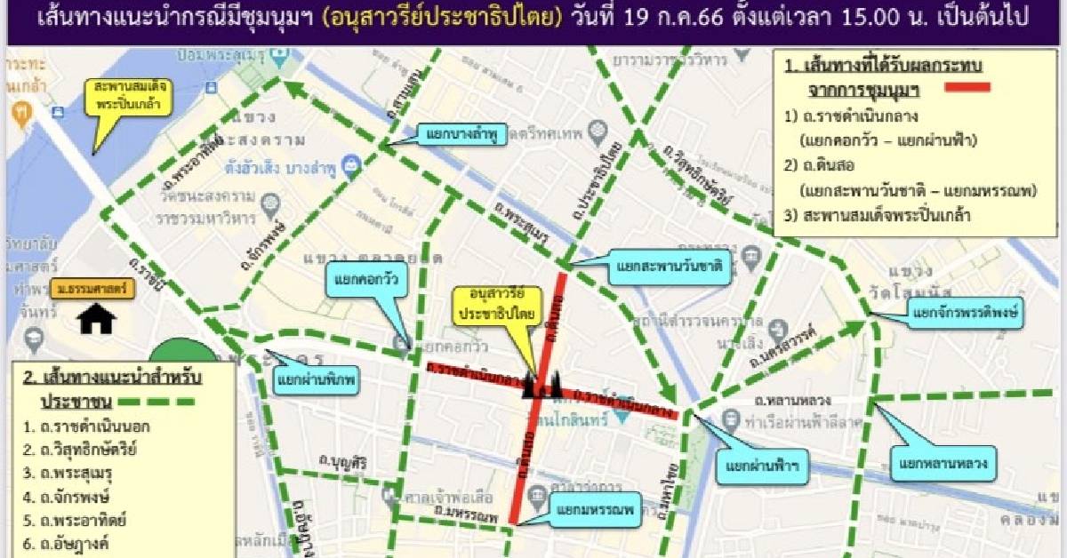 19 ก.ค. – บช.น. แนะประชาชนหลีกเลี่ยงเส้นทาง กรณีมีการชุมนุมฯ บริเวณอนุสาวรียป์ระชาธิปไตย ในวันที่ 19 ก.ค.66