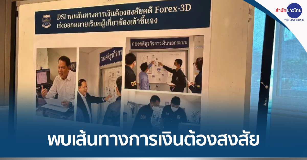 ดีเอสไอ 21 ก.ค. – DSI พบเส้นทางการเงินต้องสงสัยคดีฟอกเงิน Forex-3D ออกหมายเรียกผู้เกี่ยวข้องใกล้ชิดกับ “กระทิง” รวม 3 ราย เข้าชี้แจงเส้นทางการเงินในฐานะพยาน