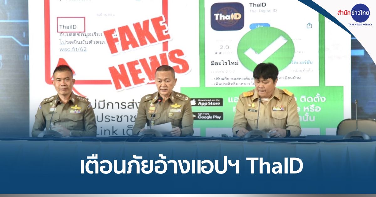 ตร. 24 ก.ค.- สำนักงานตำรวจแห่งชาติ เตือนภัยออนไลน์ ระวังคนร้ายอ้างแอปฯ ThaID หลอกโหลดแอปฯ ดูดเงิน ด้านกรมการปกครอง ยืนยันไม่มีช่องทางไลน์ทางการในการติดต่อกับประชาชน และไม่มีนโยบายส่ง SMS ไปยังประชาชนแต่อย่างใด