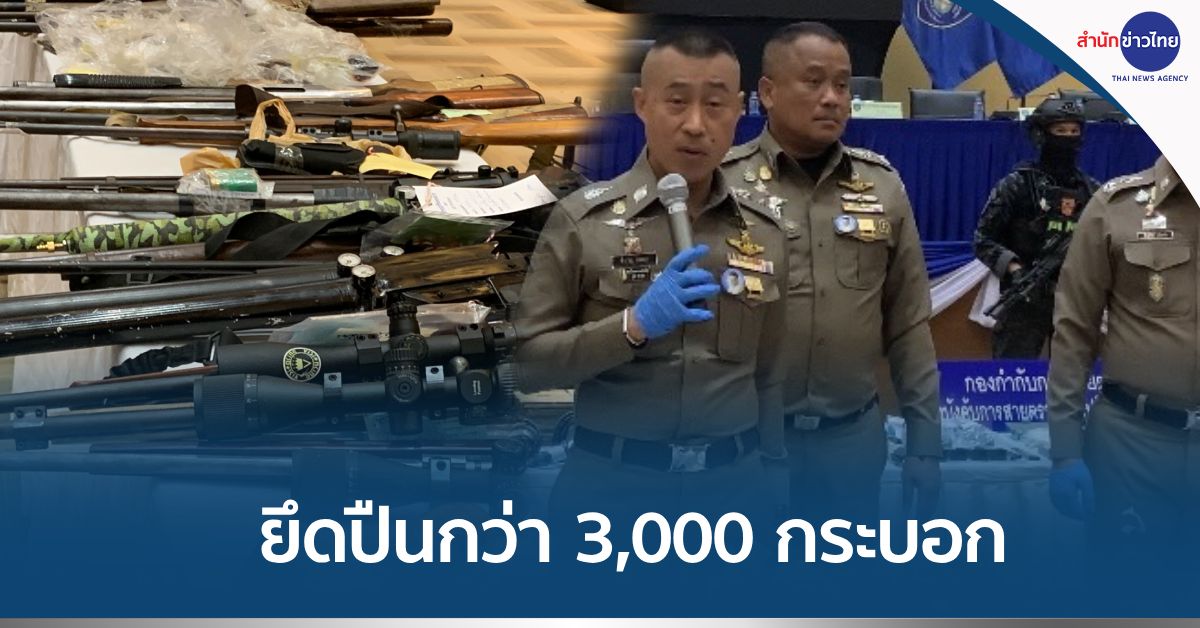 กรุงเทพฯ 25 ก.ค.- ตำรวจแถลงผลปฏิบัติการ “ล้างบางอาวุธปืน คืนสันติชาวประชา” ค้น 1,658 จุด ทั่วประเทศ ยึดอาวุธปืนกว่า 3,000 กระบอก พร้อมเครื่องกระสุนกว่า 160,000 นัด