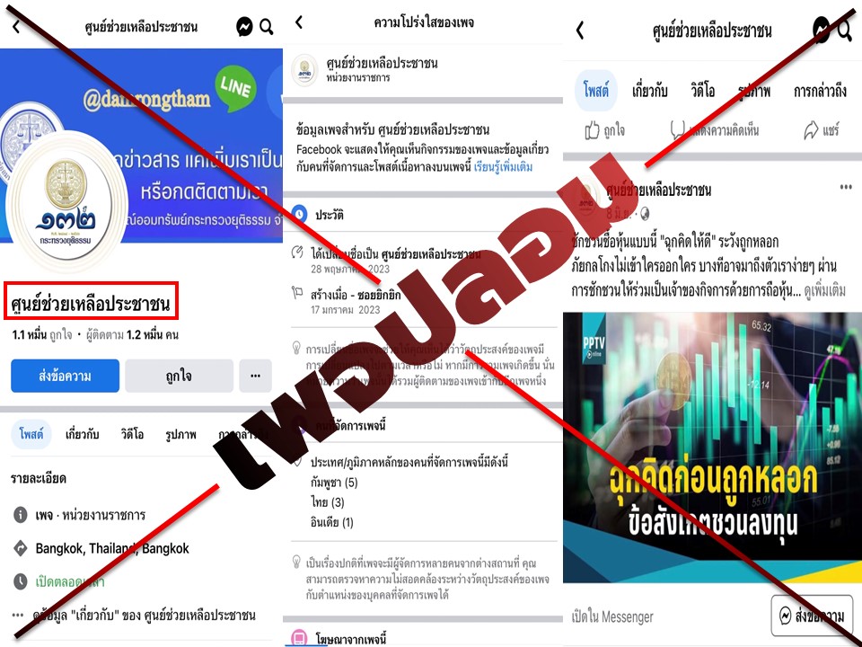 6.เพจเฟซบุ๊กปลอม หากตรวจสอบความโปร่งใสของเพจ จะพบว่าเคยเปลี่ยนชื่อมาจากเพจอื่นที่น่าสงสัย และมีผู้ดูแลอยู่ต่างประเทศ