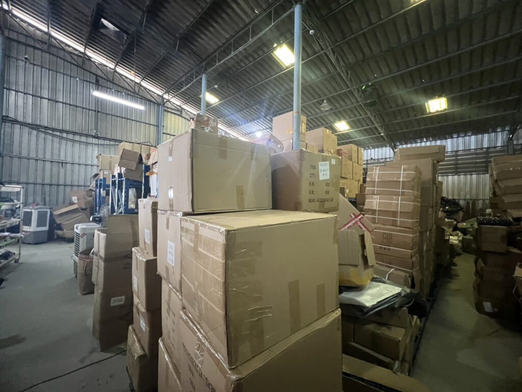 ของกลางที่พบสินค้าลักลอบหนีภาษีนำเข้าจากต่างประเทศ และสินค้าผิดลิขสิทธิ์หลากลายประเภท เช่น เตาแก๊สปิกนิก สเก็ตบอร์ด ปัตตาเลี่ยน กระเป๋ากล้อง Sony, Cannon พัดลมตั้งโต๊ะ ฯลฯ ประมาณ 100,000 ชิ้น