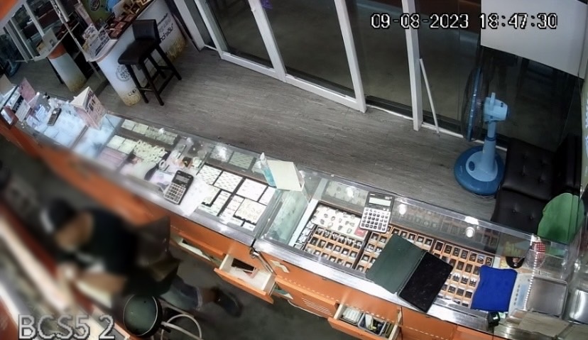 คดีนี้มีหลักฐานสำคัญเป็นภาพจากกล้องวงจรปิดในจุดเกิดเหตุที่สามารถบันทึกเหตุการณ์ได้ เวลาประมาณ 18.46 น. ชาย 1 คน รูปร่างท้วม สวมเสื้อยืดสีดำ กางเกงขาสั้น 3 ส่วน สวมหมวกแก๊ปสีดำลายตาราง สะพายกระเป๋าสีดำ ถือถึงพลาสติก เดินเข้ามาในร้าน จากนั้นหยิบขวดสเปรย์แอลกอฮอล์ ขึ้นมาวางไว้บนเคาน์เตอร์ จากนั้นก็พูดกับพนักงาน “จะปล้น หากไม่ยินยอมจะจุดไฟเผา” และคนร้ายก็ฉีดแอลกอฮอล์บนเคาน์เตอร์กระจกพร้อมกับถือไฟแช็กขึ้นมาขู่ ด้วยความตกใจพนักงานผู้หญิง 3 คน หลบหนีไปอยู่หลังร้าน จากนั้นคนร้ายปีนข้ามเคาน์เตอร์กระจกไปหยิบทองรูปพรรณและเงินสด ไปรวมกว่า 1.7 ล้านบาท โดยรายการทรัพย์สินมีดังนี้ สร้อยคอทองคำ นำหนัก 2 สลึง จำนวน 16 เส้น, สร้อยคอทองคำ น้ำหนัก 1 บาท จำนวน 22 เส้น, สร้อยคอทองคำ น้ำหนัก 2 บาท จำนวน 9 เส้น รวมน้ำหนัก 48 บาท และเงินสดประมาณ 200,000 บาท จากนั้นก็ขี่รถจักรยานยนหลบหนีไป.-สำนักข่าวไทย