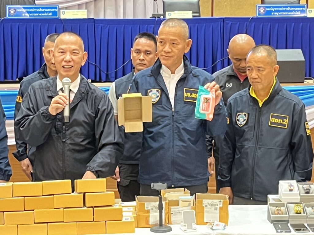 กทม. 12 ส.ค.-ผบช.สอท. แถลงผลปฏิบัติการทลายโกดังขบวนการเปิดเพจส่งพัสดุสินค้าไม่ตรงปก และหลอกเก็บเงินปลายทาง ตรวจยึดของกลางได้จำนวนมาก ความเสียหายกว่า 10 ล้านบาท พร้อมจับกุมผู้ต้องหา 4 ราย