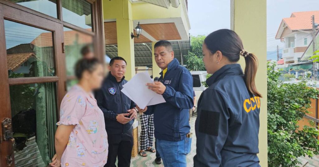 15 ส.ค. – ตำรวจไซเบอร์ แถลงจับกุมขบวนการล่อลวงหลอกอ้างตัวเป็นผู้กำกับ สภ.เมืองตาก อ้างพบพัสดุผิดกฎหมาย หลอกเหยื่อโอนเงิน เสียหายเกือบ 3 ล้านบาท ตำรวจตรวจพบขบวนการนี้ทำมาเกือบ 2 ปี มีเงินหมุนเวียนในบัญชีเกือบ 300 ล้านบาท ผู้สั่งการเป็นคนไทย ที่อาศัยอยู่ในประเทศเพื่อนบ้าน