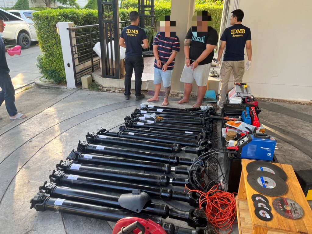 เวลา 11.00 น. พล.ต.อ.ชินภัทร สารสิน รอง ผบ.ตร. ในฐานะ ผอ.ศอ.ปส.ตร., พล.ต.ต.นพศิลป์ พูนสวัสดิ์ รอง ผบช.น. และ พล.ต.ต.ธีรเดช ธรรมสุธีร์ ผบก.สส.บช.น./หน.ศอ.ปส.ตร ชุดปฏิบัติการที่ 5 นำตรวจสอบ บ้านหลังหนึ่งย่านกรุงเทพกรีฑา จับกุมผู้ต้องหาชาวไต้หวัน 6 คน และ สาวไทย 1 คน พร้อมยึด ยาเสพติด กัญชา 10 กิโลกรัม ไฟวไฟว์ 29 เม็ด ไอซ์ ประมาณ 1 กก. เคตามีน 17 กรัม แฮปปี้วอเตอร์ 1 ซอง แท่งเหล็กเพลากลางรถบรรทุก 17 แท่ง อุปกรณ์เพื่อตัดแปลงท่านกล่าวเพื่อใช้ซุกยาเสพติดกว่า 15 รายการ โดยมีแผนประทุษกรรมสุดแนบเนียน “ซุกเพลารถ” ตบตาการตรวจสอบของเจ้าหน้าที่