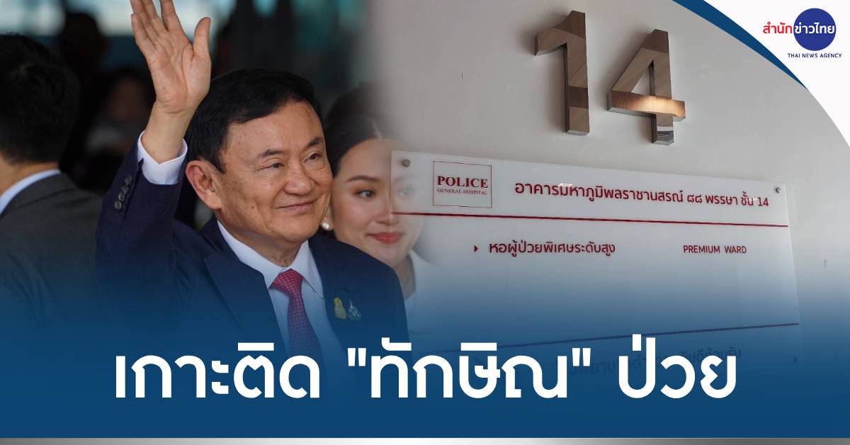บรรยากาศอาคารมหาภูมิพลราชานุสรณ์ 88 พรรษา รพ.ตำรวจ เช้านี้ ยังเป็นปกติ มีคนไข้มารักษาติดตามอาการเยอะเหมือนทุกวัน โดยหลังจากเจ้าหน้าที่ราชทัณฑ์นำตัว นายทักษิณ ชินวัตร อดีตนายกรัฐมนตรี ออกจากเรือนจำพิเศษกรุงเทพฯ ด้วยอาการป่วยเข้ามารักษาอาการที่โรงพยาบาลตำรวจ เวลา 00.30 น. จากนั้นทางแพทย์ได้ทำการรับตัวและนำตัวไปที่ชั้น 14 หอผู้ป่วยพิเศษระดับสูง ซึ่งชั้นดังกล่าวมีอยู่แค่ 2 ปีก ปีกละ 1 ห้อง สำหรับนายทักษิณอยู่ที่ห้อง รอยัล สูท ห้อง 1401 โดยมีรายงานว่าเบื้องต้นทางแพทย์ศัลยกรรมระบบปราสาท ได้ให้ยาละลายลิ่มเลือด ยาความดัน ยาคลายเครียด เนื่องจากผู้ป่วยมีโรคประจำอยู่แล้ว โดยขณะนี้ นายทักษิณ อยู่ระหว่างการพักผ่อน โดยมีเจ้าหน้าที่ราชทัณฑ์คอยดูแลอย่างใกล้ชิด