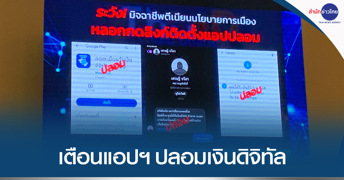 กรุงเทพฯ 24 ส.ค. – ตำรวจไซเบอร์เตือนภัยมิจฉาชีพหลอกติดตั้งแอปพลิเคชันปลอมนโยบายเงินดิจิทัล 10,000 บาท