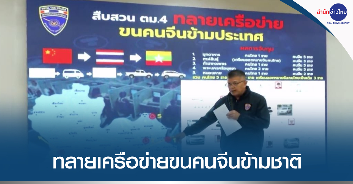 ตำรวจตรวจคนเข้าเมือง ทลายเครือข่ายขนคนจีน หลอกคนจีนด้วยกันไปทำงานแก๊งคอลเซ็นเตอร์ในประเทศเพื่อนบ้าน โดยใช้ไทยเป็นทางผ่าน เบื้องต้นจับคนไทยได้ 5 คน คนจีน 20 คน และเตรียมขยายผลออกหมายจับคนไทยเพิ่มอีก 3 คน โดยเป็นการจับกุมทั้งหมด 5 ครั้ง ในหลายพื้นที่ ซึ่งการสืบสวนพบว่า แก๊งคอลเซ็นเตอร์ย้ายฐานปฏิบัติการจากกัมพูชาไปเมียนมา ทำให้มีขบวนการขนคนจีนข้ามแดนทางช่องทางธรรมชาติผ่านเข้าไทย ก่อนออกไปเมียนมา โดยมีคนไทยร่วมกับคนจีน