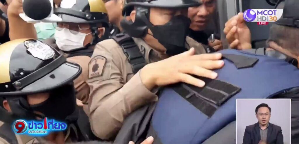 ภายหลังนักข่าวพยายามถามแล้วทุกคนก้มหน้า รถคุมขังก็เคลื่อนออกจาก สภ.เมืองนครปฐม โดยมีรถตู้และรถหน่วยปฏิบัติการพิเศษติดตามคุ้มกันไป 5 คัน และทันที่ขบวนรถถึงศาลอาญาทุจริตและผู้รับผิดชอบมาก 7 ได้เลี้ยวเข้าไปด้านหลังศาล และส่งตัวตำรวจ 6 นาย เข้าห้องพิจารณาคดี โดยไม่อนุญาตให้ผู้สื่อข่าวเข้าไปบันทึกภาพ ในช่วงลงจากรถ และในห้องพิจารณาคดี