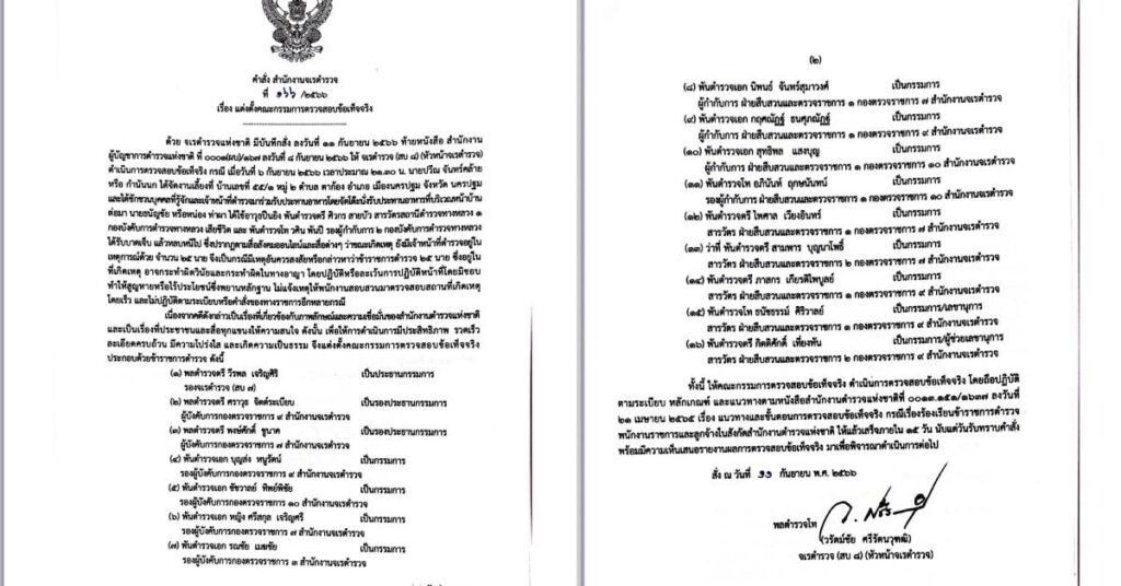 กรุงเทพฯ 11 ก.ย. – จตช.สั่งตั้งคณะกรรมการสอบข้อเท็จจริง 25 ตำรวจ ร่วมงานเลี้ยงบ้าน “กำนันนก” ขีดเส้นแล้วเสร็จภายใน 15 วัน