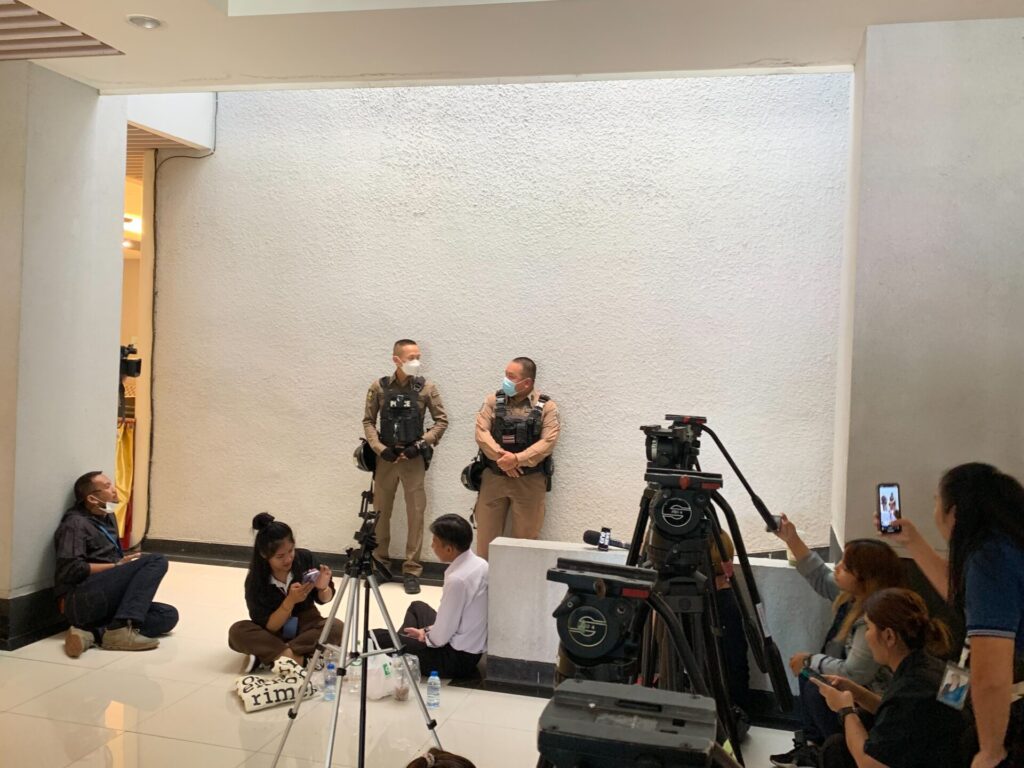 บรรยากาศที่ห้องสอบสวนตำรวจภูธรภาค 7 จ.นครปฐม เช้านี้ ชุดสอบสวนคลี่คลายคดี “กำนันนก” เริ่มทยอยเข้ามาที่ห้องประชุม เพื่อสอบปากคำพยานและผู้เกี่ยวข้องเพิ่มเติม เช่น กลุ่มนักดนตรีที่ไปเล่นในงานเลี้ยงบ้านกำนันนก ประมาณ 5 คน หลังเมื่อคืนที่ผ่านมา พล.ต.อ.สุรเชษฐ์ หักพาล รองผู้บัญชาการตำรวจแห่งชาติ เดินทางมาประชุมติดตามความคืบหน้าคดี และระบุว่ามีผู้เกี่ยวข้องเป็นทั้งตำรวจ และพลเรือนเพิ่มอีก คือพบมีพลเรือนอีก 17 คน จากเดิม 10 คน รวมเป็น 27 คน ส่วนตำรวจที่ไปร่วมงานเบื้องต้นพบเพิ่มอีก 2 นาย จาก 26 นาย รวม 28 นาย หมายความว่ามีผู้ที่อยู่ในงานเลี้ยงบ้านกำนันนกมากถึง 55 คน และในวันนี้ พ.ต.อ.พงษกร อุปพงษ์ รักษาราชการแทน ผู้กำกับ สภ.เมืองนครปฐม ได้จัดชุดสายตรวจในเครื่องแบบมาคอยดูแล ความปลอดภัยสถานที่และกลุ่มสื่อมวลชนที่มาติดตามทำข่าวจำนวนมาก หลังวานนี้มีนักข่าวโทรไปสอบถามข้อมูลกับผู้กำกับนายหนึ่งที่กำลังเป็นข่าว แต่ช่วงหนึ่ง ผกก.พูดจาในทำนองว่า “หากเจอที่ภาค 7 ไม่ต้องมาสัมภาษณ์ เดี๋ยวปืนจะลั่นใส่”
