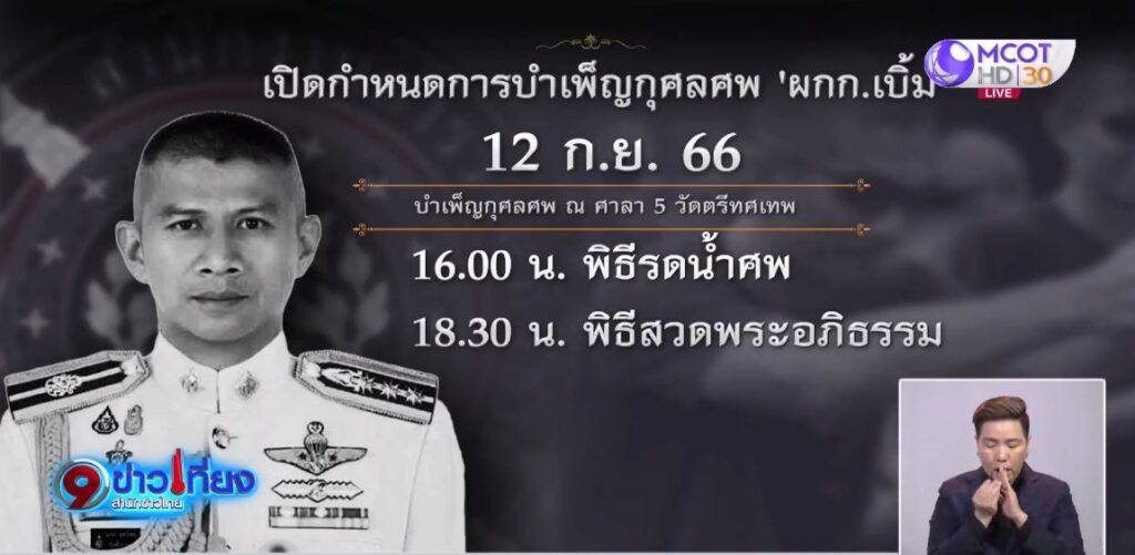สำหรับกำหนดการงานศพพันตำรวจวชิรา วันนี้ (12 กันยายน) จัดพิธีรดน้ำศพที่ศาลา 5 วัดตรีทศเทพ และตั้งสวดพระอภิธรรม 1 คืน ก่อนเคลื่อนศพไปที่วัดใหญ่ท่าเสา จ.อุตรดิตถ์ และสวดพระอภิธรรมอีก 4 วัน ก่อนจะมีพิธีฌาปนกิจวันอาทิตย์นี้ . – สำนักข่าวไทย