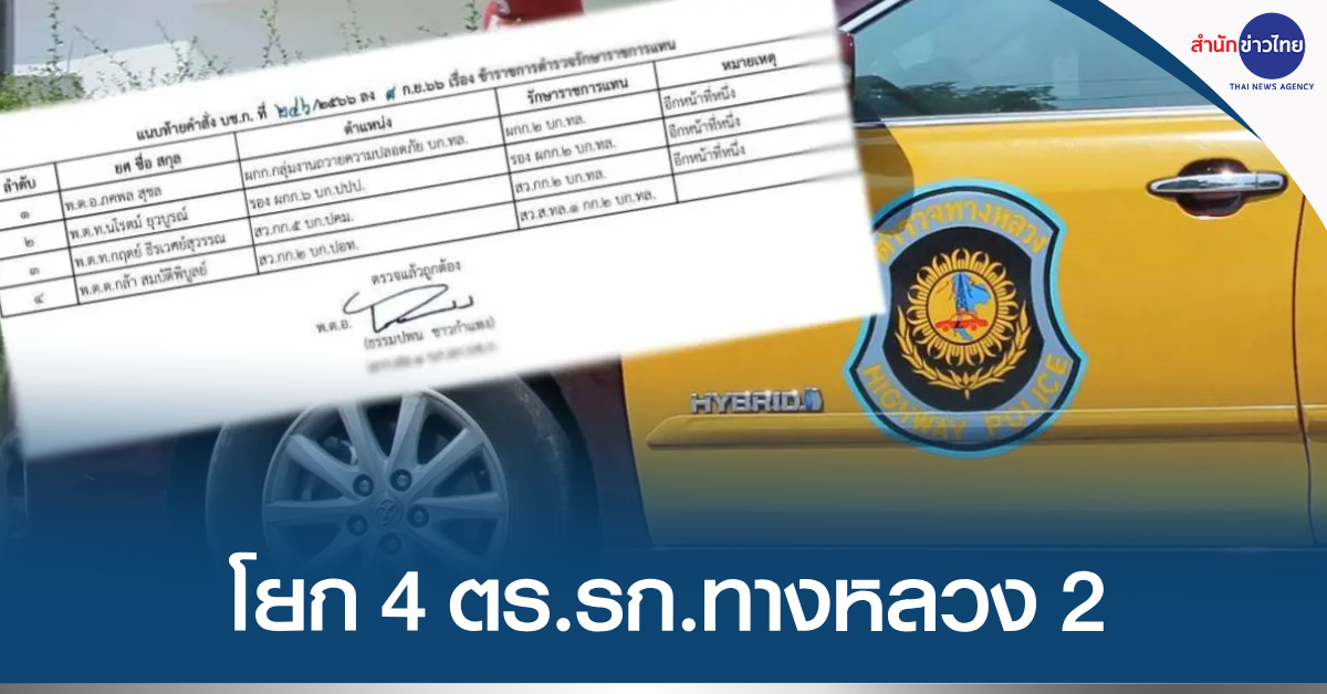 บช.ก. 14 ก.ย. – บช.ก. ลงนามคำสั่งโยก 4 ตำรวจ รักษาการทางหลวง 2 หลัง “ผกก.เบิ้ม-สารวัตรแบงค์” เสียชีวิต เพื่อให้การบริหารจัดการในองค์กรดำเนินต่อไปได้ มีผลตั้งแต่ 8 ก.ย.ที่ผ่านมา