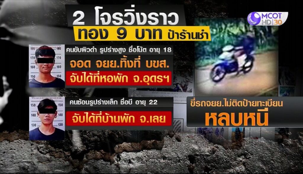 รวบ 2 คนร้ายชิงทอง 9 บาท ป้าร้านขายของชำ