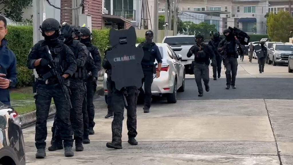 สำหรับการตรวจค้นในวันนี้เป็นการปิดล้อม 30 จุดเกี่ยวข้องคอลเซ็นเตอร์ และการพนันออนไลน์ ที่ลาว เป็นเครือข่ายใช้บัญชีผู้ต้องหาคดียาเสพติดหลายบัญชี เงินหมุนเวียนกว่า 1,000 ล้านบาท ในพื้นที่ 6 จังหวัด คือ เพชรบุรี สมุทรปราการ กรุงเทพ ขอนแก่น อุดรธานี และสระบุรี แก๊งพนันออนไลน์ โดยมีหมายจับ 11 ผู้ต้องหา ที่มีทั้งพลเรือน และตำรวจ มีรายงานว่า 2 ในตำรวจที่เกี่ยวข้อง เป็นหัวหน้าพนักงานสอบสวน ยศ “พล.ต.ต.” และ พนักงานสอบสวน ยศ “พ.ต.อ.” ของ รองผบ.ตร.คนหนึ่ง .-สำนักข่าวไทย