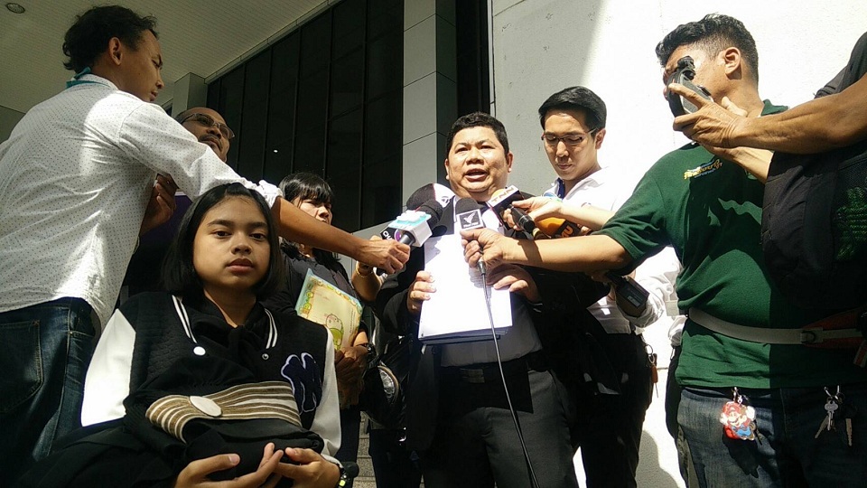 กรุงเทพฯ 6 ก.ค.- น้องบีม พร้อมทนายนำหลักฐานยื่นฟ้องเรียกค่าเสียหายต่อศาลแพ่ง หลังถูกนายพิสิษฐ์ สัมมาเลิศ ทนายความอาสาฉ้อโกงเงินสินไหมทดแทน