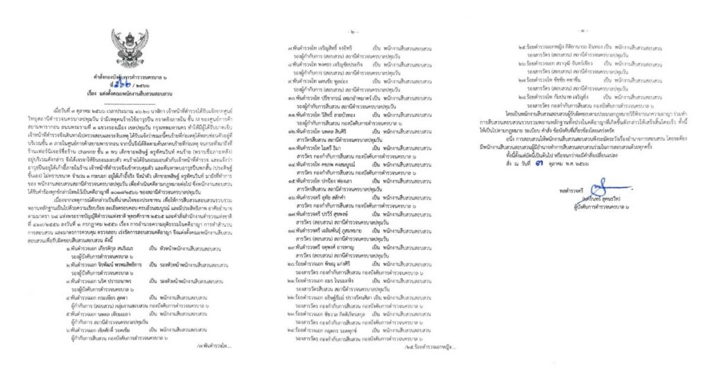 อย่างไรก็ตาม พล.ต.ต.นครินทร์ สุคนธวิท ผู้บังคับการตำรวจนครบาล 6 ได้ลงนามในคำสั่งแต่งตั้งคณะพนักงานสืบสวนสอบสวน คดีกราดยิงในศูนย์การค้าสยามพารากอนเพื่อให้การสอบสวนสืบสวนดำเนินไปอย่างละเอียด รอบคอบ สมบูรณ์ บริสุทธิ์ ยุติธรรม และให้ได้ข้อเท็จจริงโดยเร็ว จึงได้มอบหมายให้ พ.ต.อ.เกียรติกุล สนธิเณร รองผู้บังคับการตำรวจนครบาล 6 เป็นหัวหน้าคณะ ประกอบไปด้วย พนักงานสอบสวนและฝ่ายสืบสวน ของกองบังคับการตำรวจนครบาล 6 และ สน.ปทุมวัน รวมทั้งหมด 28 นาย โดยคำสั่งดังกล่าวมีผลตั้งแต่วันที่ 3 ตุลาคมเป็นต้นไป. -สำนักข่าวไทย