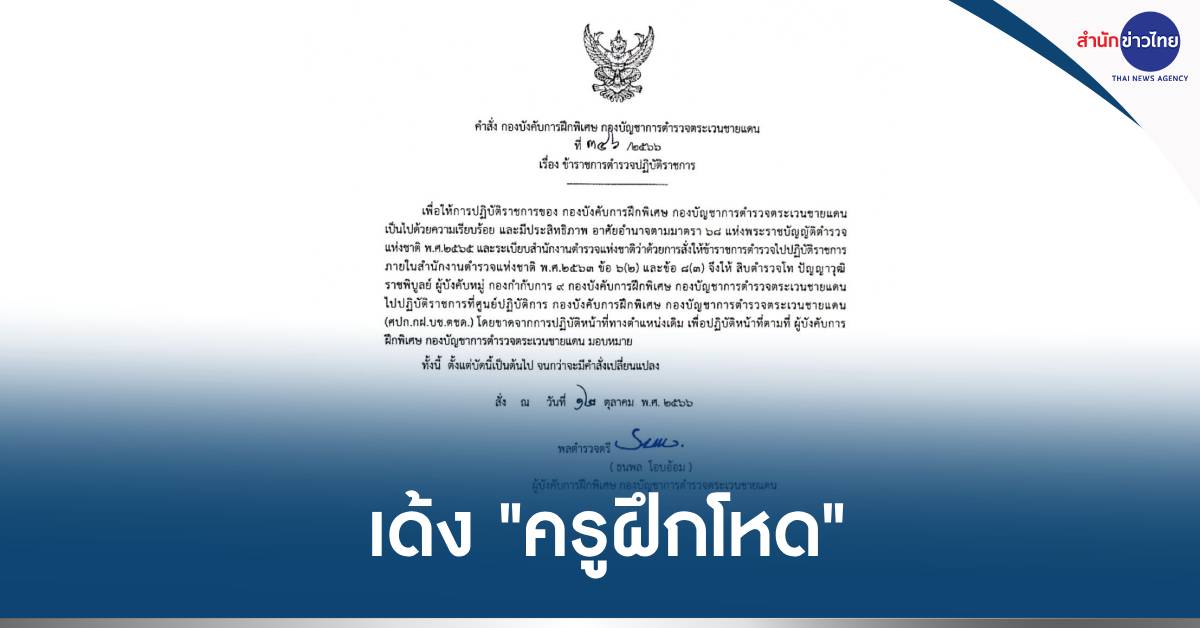 กทม. 12 ต.ค.-พล.ต.ต.ธนพล มีหนังสือคำสั่ง เด้ง “ครูฝึกโหด” ไปปฏิบัติราชการที่ ศปก.กฝ.บช.ตชด. หลัง “นสต.ตชด.” เสียชีวิตจากการฝึกหนัก