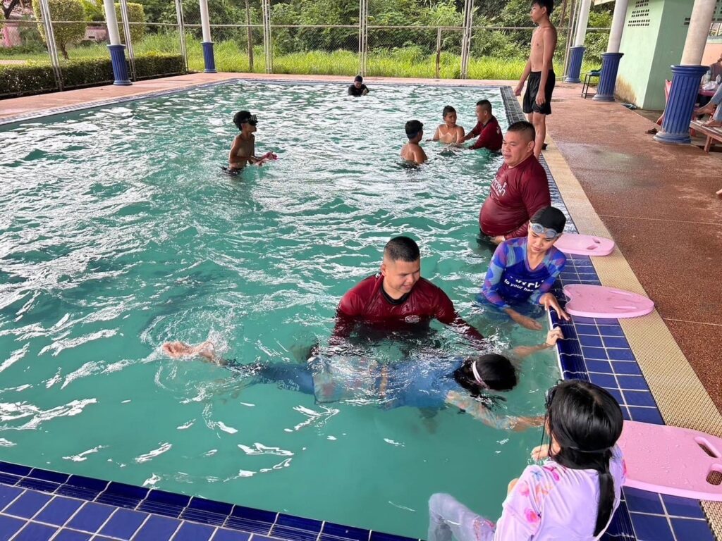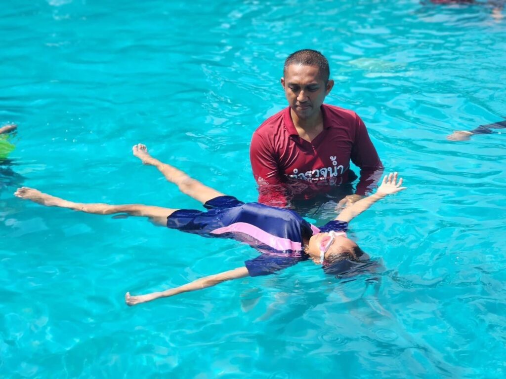 ทั้งนี้ โครงการดังกล่าวมีวัตถุประสงค์เพื่อป้องกันการเกิดอุบัติเหตุจากการจมน้ำของเด็ก และมีหัวข้อการสอน ดังนี้ ฝึกการลอยตัว แนะนำอุปกรณ์ช่วยชีวิต การใช้งานอุปกรณ์ แนะนำสาธิตการเอาตัวรอดทางน้ำ เมื่อตกน้ำ สาธิตการช่วยเหลือผู้ประสบภัยทางน้ำ/CPR การใช้อุปกรณ์ช่วยเหลือผู้ประสบภัยทางน้ำ (ตะโกน โยน ยื่น) และอื่นๆ. -สำนักข่าวไทย