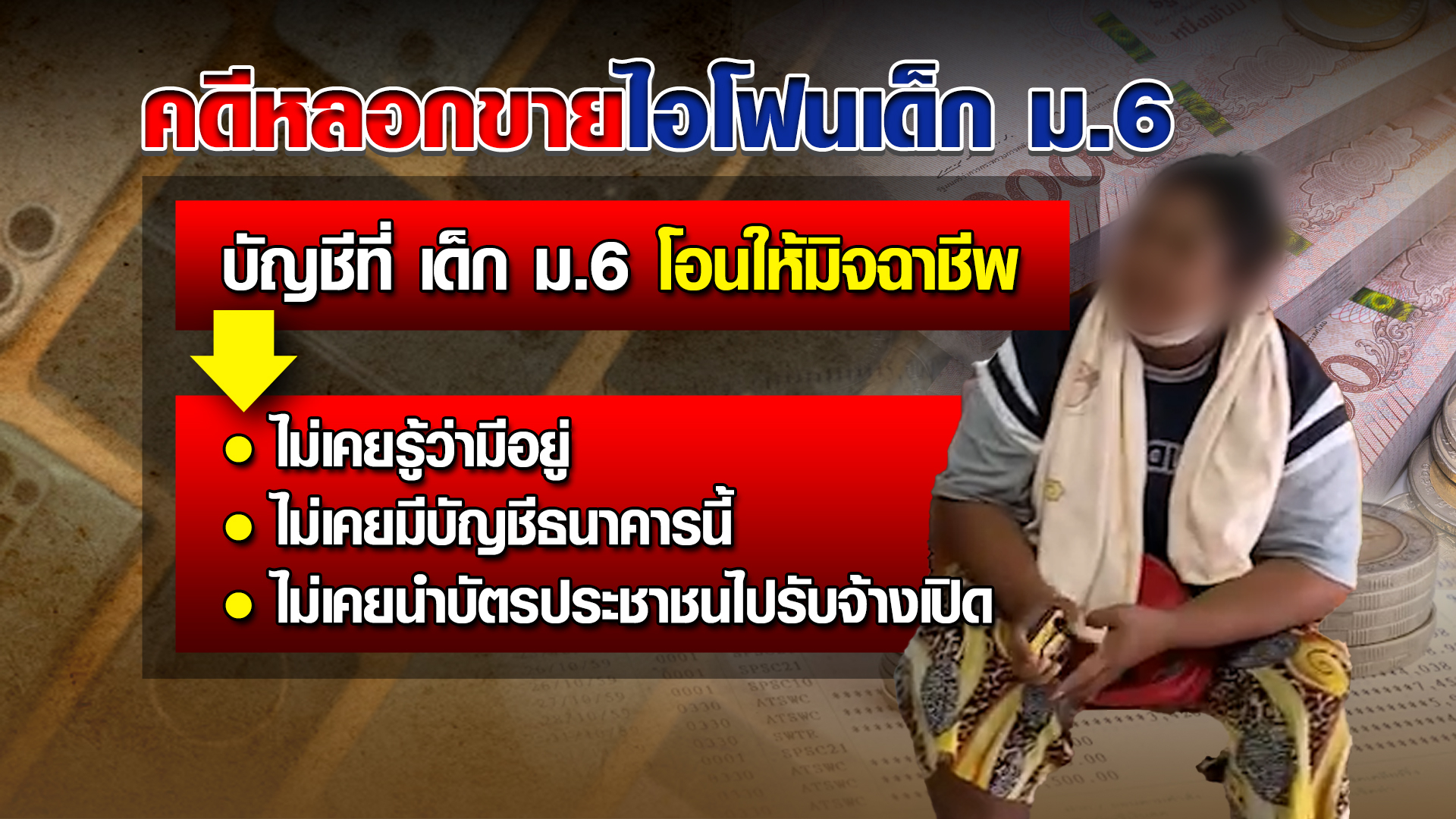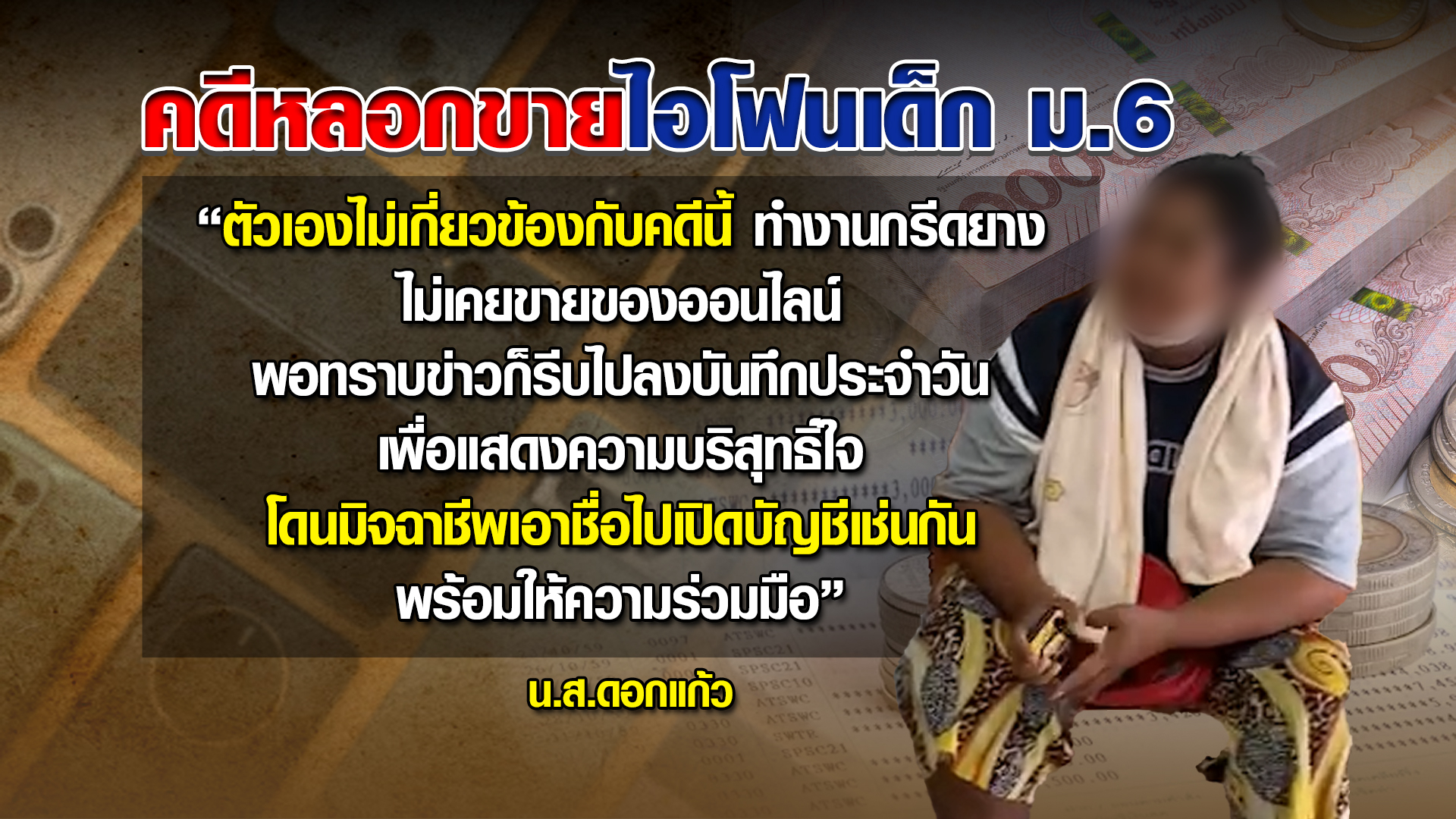 กรุงเทพฯ 18 ต.ค. – ตำรวจไซเบอร์เตรียมออกหมายจับ 5 คน เกี่ยวข้องหลอกขายไอโฟนนักเรียน ม.6 ภายหลังหนึ่งในเจ้าของบัญชีม้ามาแสดงตัวกับตำรวจ อ้างทำงานกรีดยาง ไม่เคยขายของออนไลน์ และไม่รู้ว่ามีบัญชีนี้อยู่ด้วย