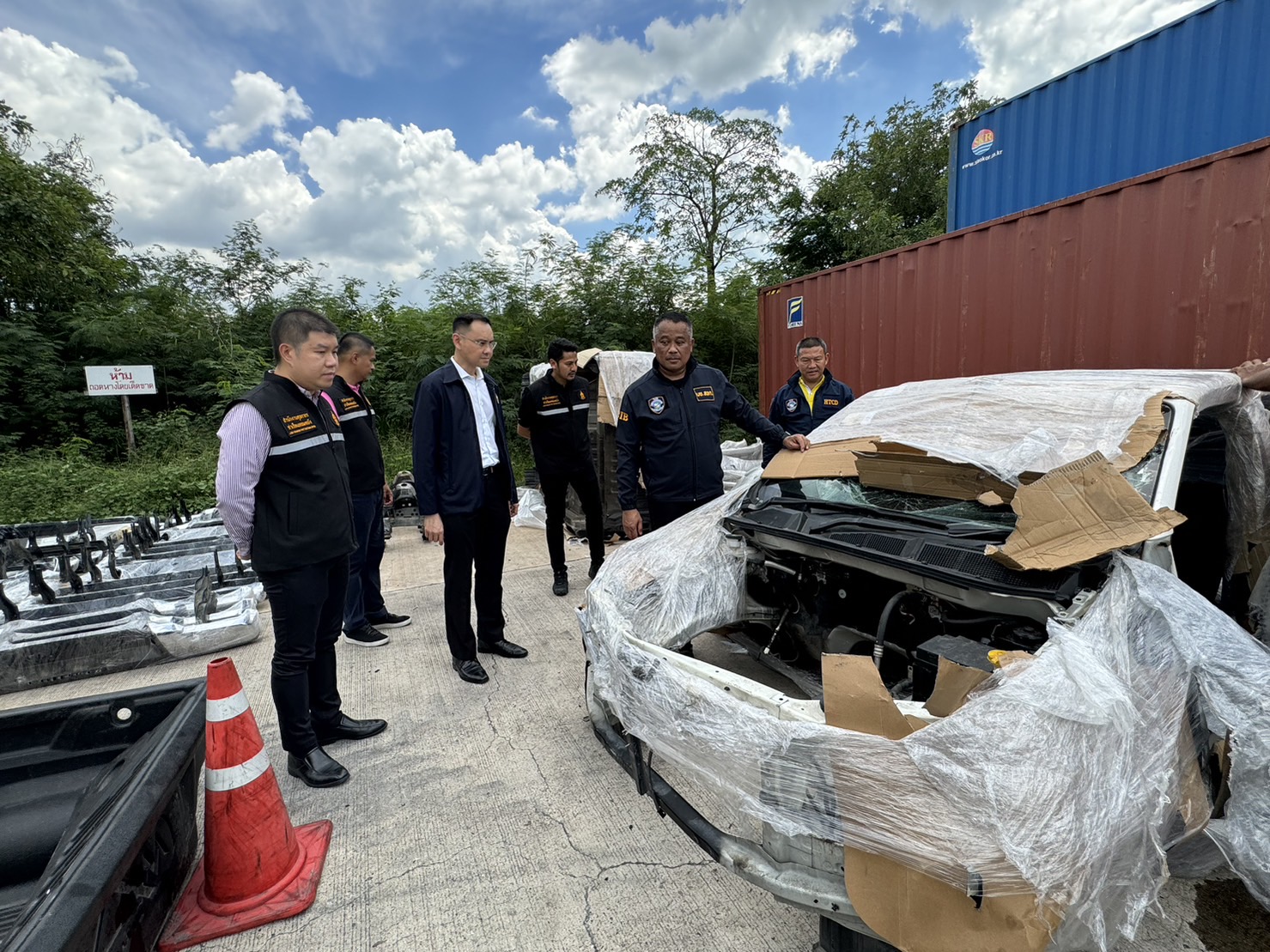 จากการตรวจสอบพบภายในตู้คอนเทนเนอร์ ซุกซ่อนเครื่องยนต์รถกระบะ 12 ตัว หัวเก๋งรถกระบะ ซากรถยนต์ ชิ้นส่วนรถกระบะ ประตูรถยนต์ อะไหล่อื่น ๆ จำนวนมาก ซึ่งทั้งหมดอยู่ในสภาพผ่านการใช้งานน้อย บ้างก็อยู่ในสภาพใหม่เอี่ยม จึงได้ทำการยึดไว้ตรวจสอบ นอกจากนี้ ในจุดอื่น ๆ ได้เข้าตรวจสอบโกดังชำแหละรถ ย่าน อ.ลำลูกกา จ.ปทุมธานี ตรวจยึดรถยนต์ ซากรถยนต์ รวม 16 คัน เครื่องยนต์ 2 เครื่อง, โกดัง ซอยรามอินทรา 47 ตรวจสอบพบหัวเก๋งรถยนต์ 22 ชิ้น รถกระบะ 5 คัน, โกดังย่านลาดกระบัง พบเครื่องยนต์ 98 เครื่อง หัวเก๋ง 8 ชิ้น รถกระบะ 3 คัน เป็นต้น