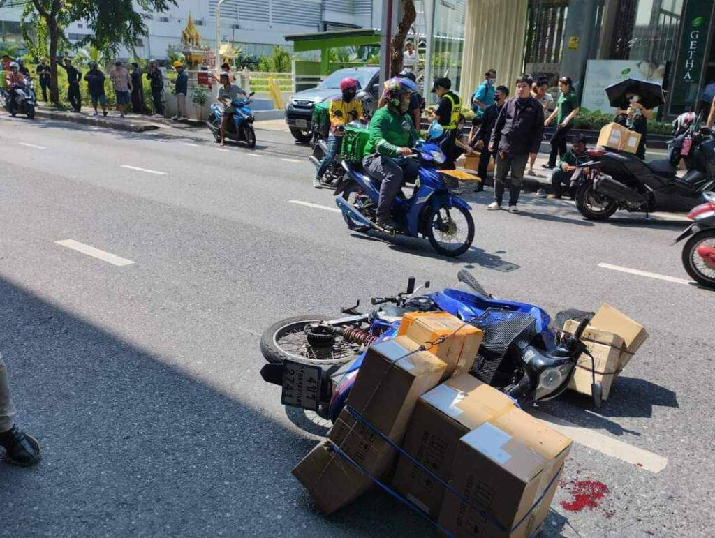นายสุรชัย เผยว่าวันเกิดเหตุกำลังขับรถไปส่งพัสดุแถวสยาม ใช้ช่องทางถนนสุขุมวิทขับตรงมาเรื่อยๆ ตามปกติ ก่อนได้ยินเสียงดังขึ้น จากนั้นก็รู้สึกว่ารถของตัวเองชนเข้ากับขอบท่อคอนกรีต รถจักรยานยนต์และตัวเองกระเด็นไปด้านข้าง โดยจักรยานยนต์ทับขาไว้ ขณะนั้นตัวเองมีสติรู้สึกตัวอยู่จึงรีบลุกขึ้น ซึ่งชาวบ้านที่เห็นเหตุการณ์ก็ได้มาช่วยพาไปนั่งบริเวณฟุตบาท จากนั้นรถของมูลนิธิก็มาช่วยไปส่งโรงพยาบาล ก่อนจะเอกซเรย์เบื้องต้นพบว่าข้อมือร้าว และมีบาดแผลถลอกเนื้อเปิดหลายจุด ส่วนบริเวณใบหน้าปากฉีกจนต้องเย็บถึง 11 เข็ม ซึ่งทางแพทย์ได้นัดให้ล้างแผลทุกวัน และนัดหมายวันที่ 17 พ.ย.นี้ ตรวจร่างกายอย่างละเอียดอีกครั้ง ส่วนใบหน้าในวันที่ 22 พ.ย.ต้องไปพบแพทย์อีกครั้งว่าต้องศัลยกรรมหรือไม่
