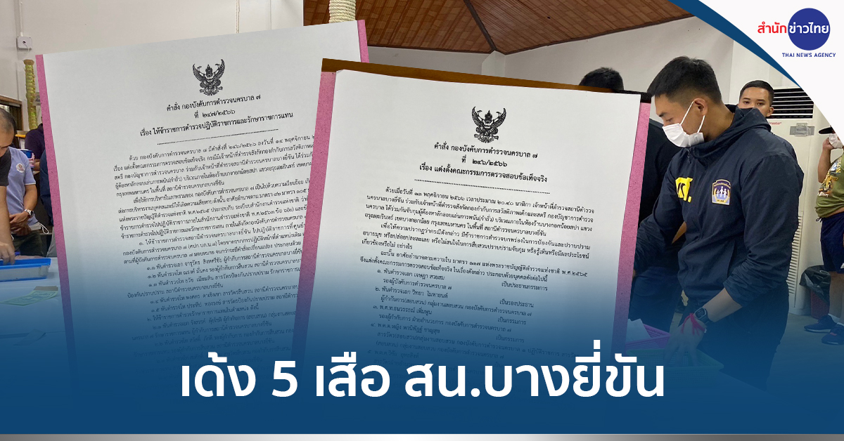 กทม. 14 พ.ย.- ผบก.น.7 สั่ง เด้ง 5 เสือ สน.บางยี่ขัน หลัง ดส.เข้าจับบ่อนกำถั่วย่านฝั่งธนฯ ด้าน ผบช.น. สั่งตั้งกรรมการตรวจสอบข้อเท็จจริงให้แล้วเสร็จใน 7 วัน