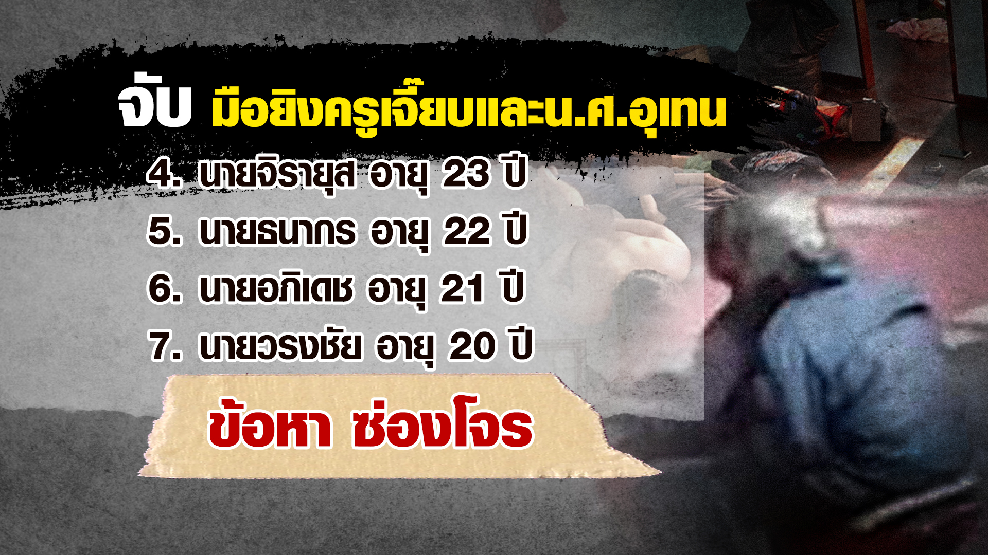 ส่วนการจับกุมเมื่อวานนี้ (22 พ.ย.66) นอกจากได้ผู้ต้องหาในคดียิง “ครูเจี๊ยบ” แล้ว ยังได้ผู้ต้องหาที่มีคดีค้างเก่าถึง 2 คน คนแรก คือ นายพฤฒิพล ที่ก่อเหตุยิงนักศึกษาอุเทนถวาย เมื่อเดือนกุมภาพันธ์ 2566 อีกคนคือ นายสหัสวรรษ อายุ 23 ปี ทำหน้าที่ขี่รถจักรยานยนต์ ยิงกลางงานแต่งของเจ้าบ่าว ซึ่งเป็นอดีตนักศึกษาอุเทนถวาย เหตุเกิดช่วงเดือนสิงหาคม 2565 ในพื้นที่ สน.สุทธิสาร