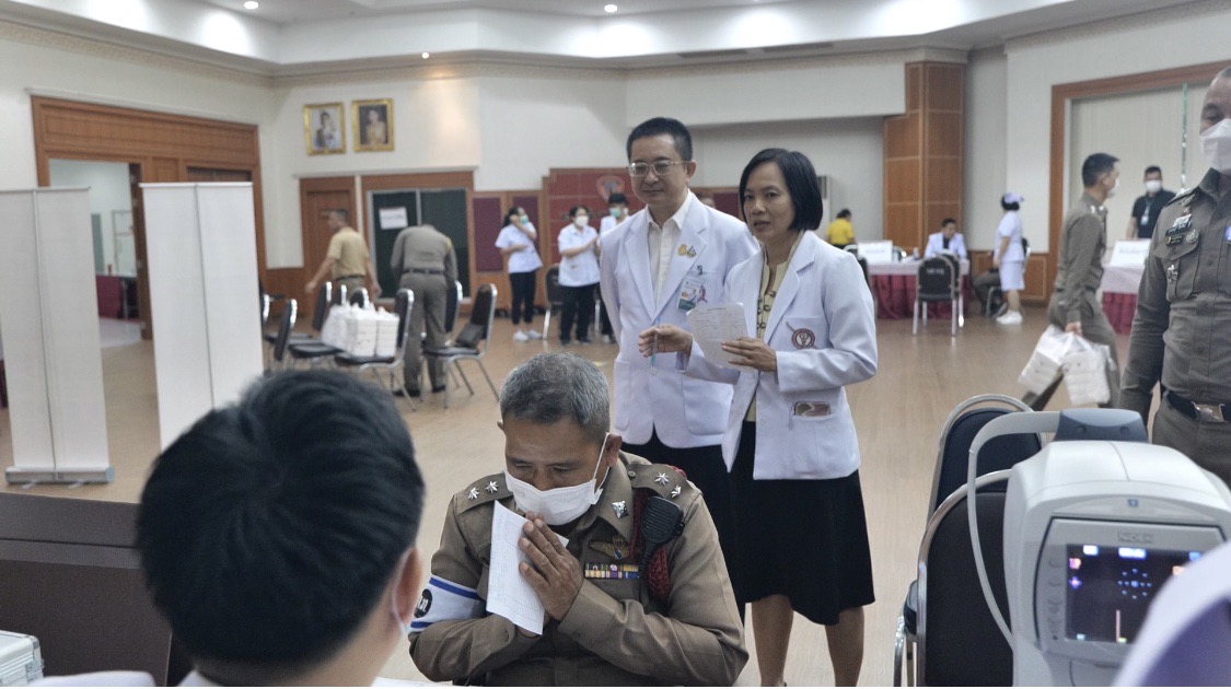 กทม. 14 ธ.ค.- นายแพทย์ใหญ่ โรงพยาบาลตำรวจ ตรวจเยี่ยมหน่วยแพทย์เคลื่อนที่ โรงพยาบาลตำรวจ ให้บริการตรวจ ปอด หู ตา ฟัน แก่เจ้าหน้าที่ตำรวจ กองบังคับการตำรวจจราจร พบมีความผิดปกติเรื่องตาจำนวนมาก