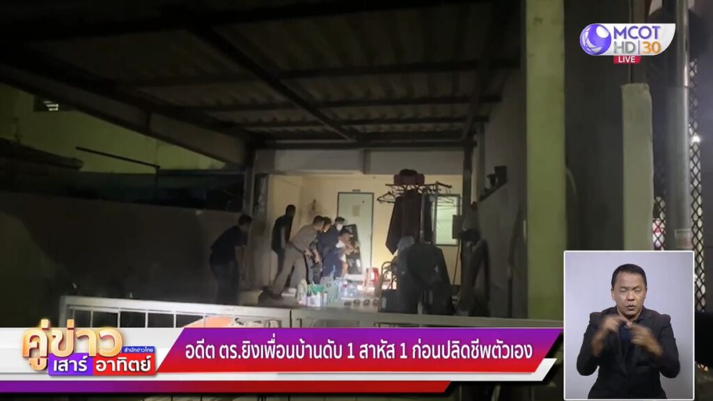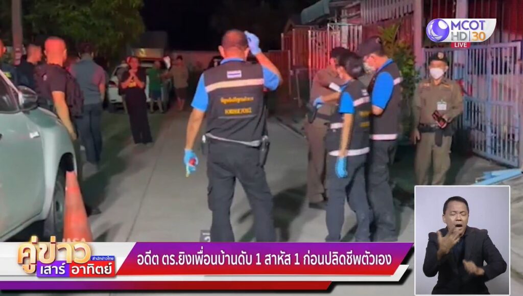 กรุงเทพฯ 23 ธ.ค. – อดีตตำรวจเมาหัวร้อน ทะเลาะเพื่อนบ้านเรื่องที่จอดรถ คว้าปืนยิงดับ 1 สาหัส 1 ก่อนวิ่งเข้าบ้านจบชีวิตตัวเอง